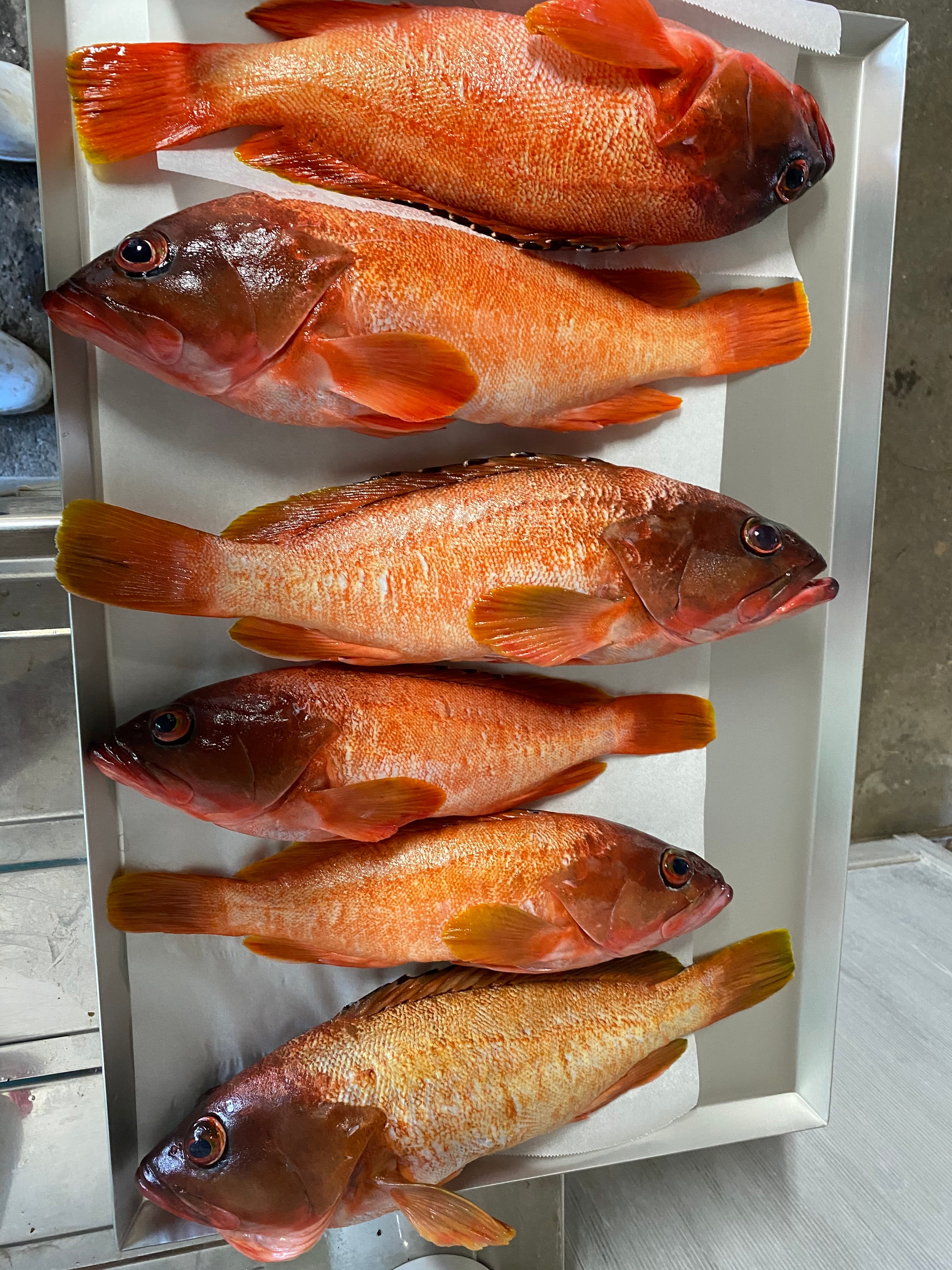 社長自ら漁に出て最終したアカハタを鮮度の良い内に加工(内臓、鱗処理)をし、特殊技術急速冷凍し、真空パックしております。